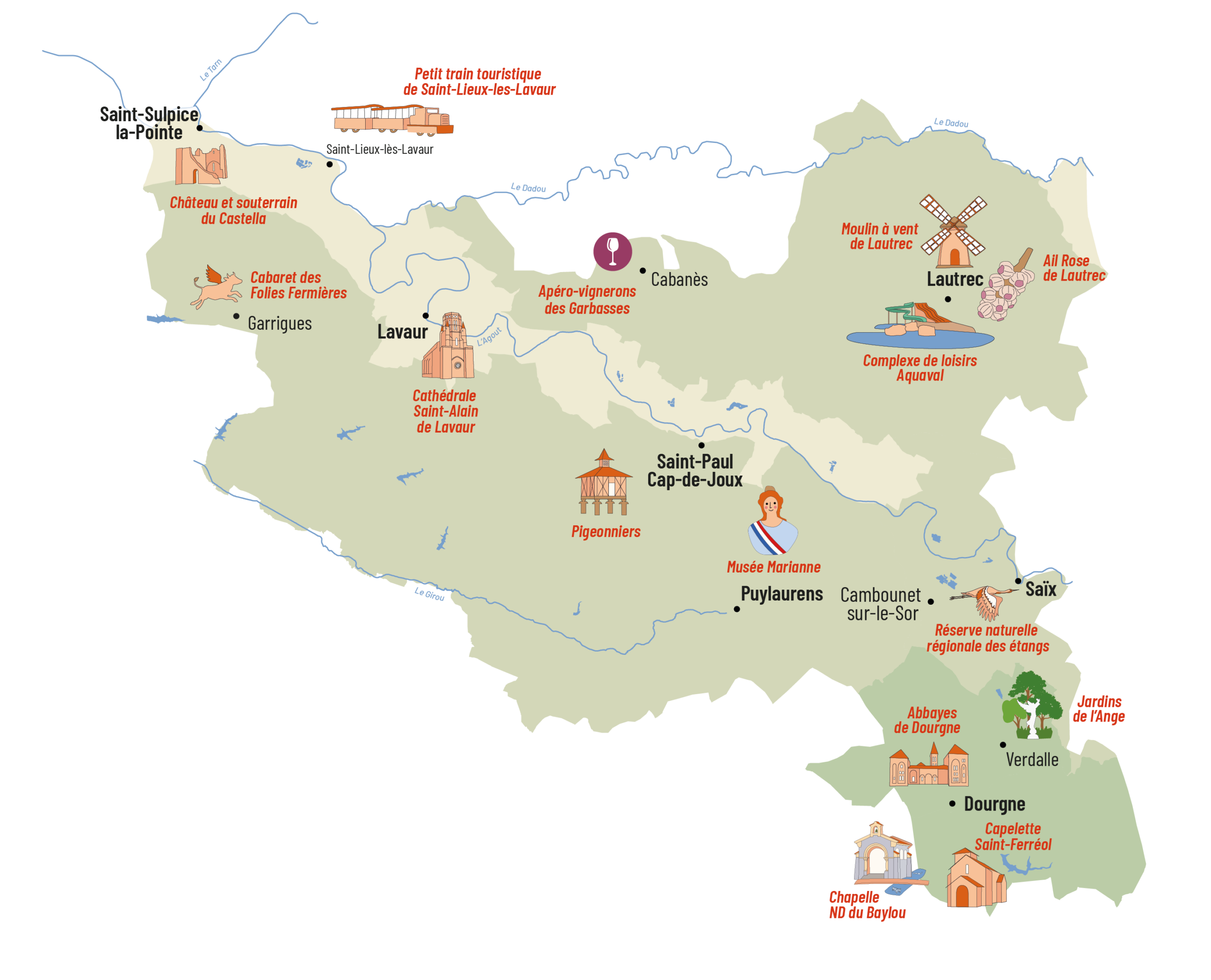 Le sud-ouest du Tarn vous réserve une sélection de bons moments à vivre, que vous ayez quelques heures, plusieurs jours ou encore davantage à passer ici. Frissonner dans le souterrain médiéval de Saint-Sulpice, méditer dans les abbayes de Dourgne, flâner dans les ruelles de Lautrec, buller au bord des lacs de nos trois bases de loisirs, rester subjugué par la beauté de la Cathédrale de Lavaur ou par la vue du haut de la Capelette… voici de bons moments à vivre pour toutes vos envies : de micro-aventure, d’excursion, d’évasion !