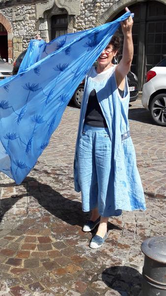 Démonstration de Teinture au Pastel les vendredis matin de l'été dans les jardins de la mairie, sur inscription.
