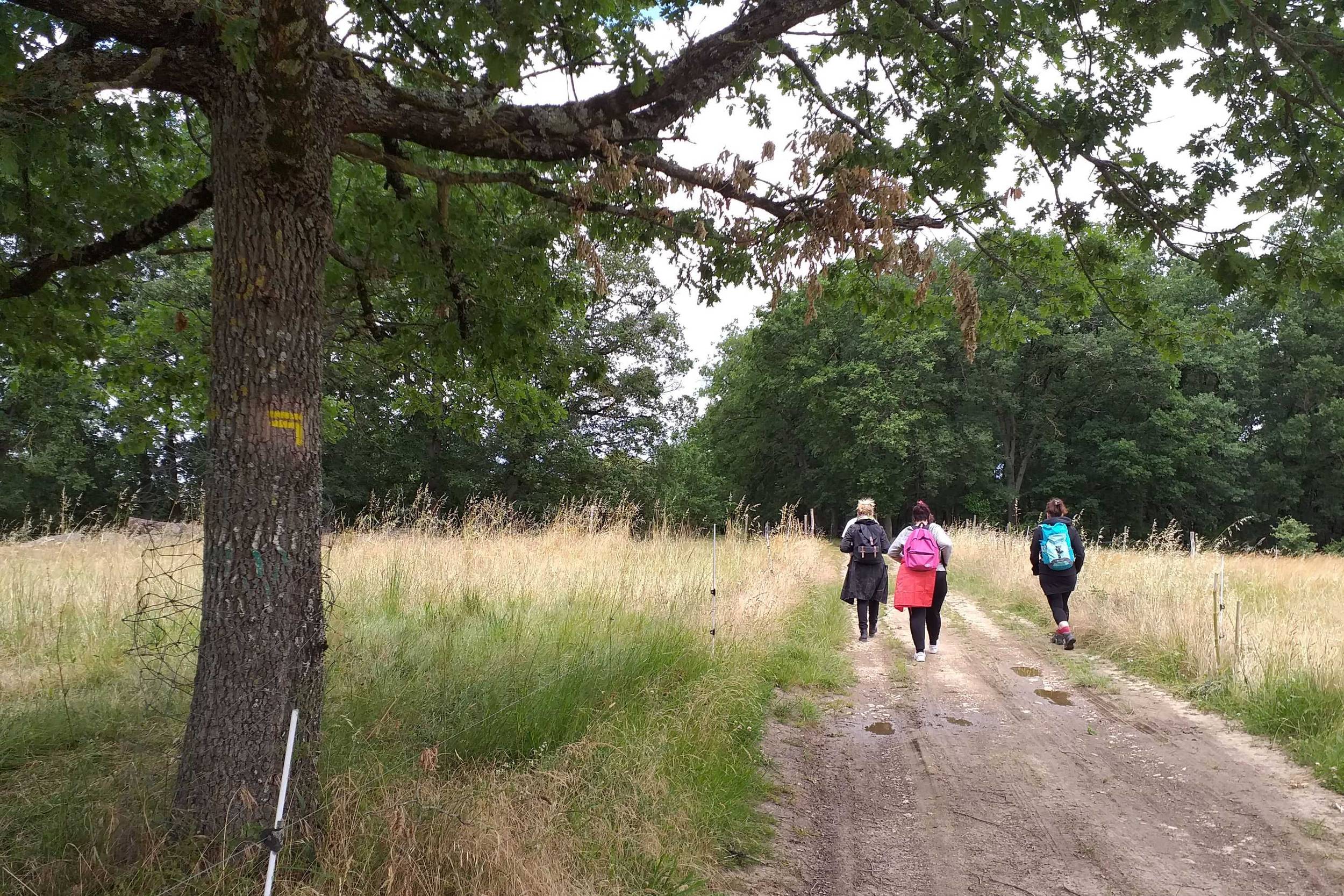 2. Quittez la route et prenez le sentier qui descend, traversez les bosquets puis vous arrivez sur un chemin caillouté.