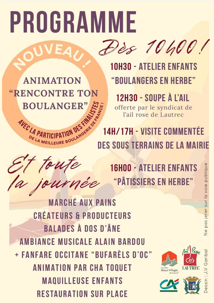 Nous vous donnons rendez-vous, au cœur du village de Lautrec, le 15 août à partir de 10h pour notre traditionnelle Fête du Pain.