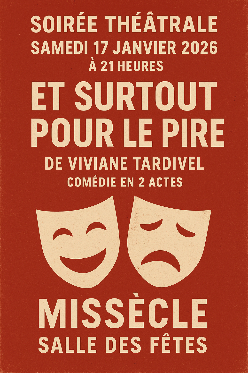 Pièce de théâtre intitulée "Et surtout pour le pire" de Viviane Tardivel (comédie en 2 actes), interprétée par la troupe des 2 Rives.