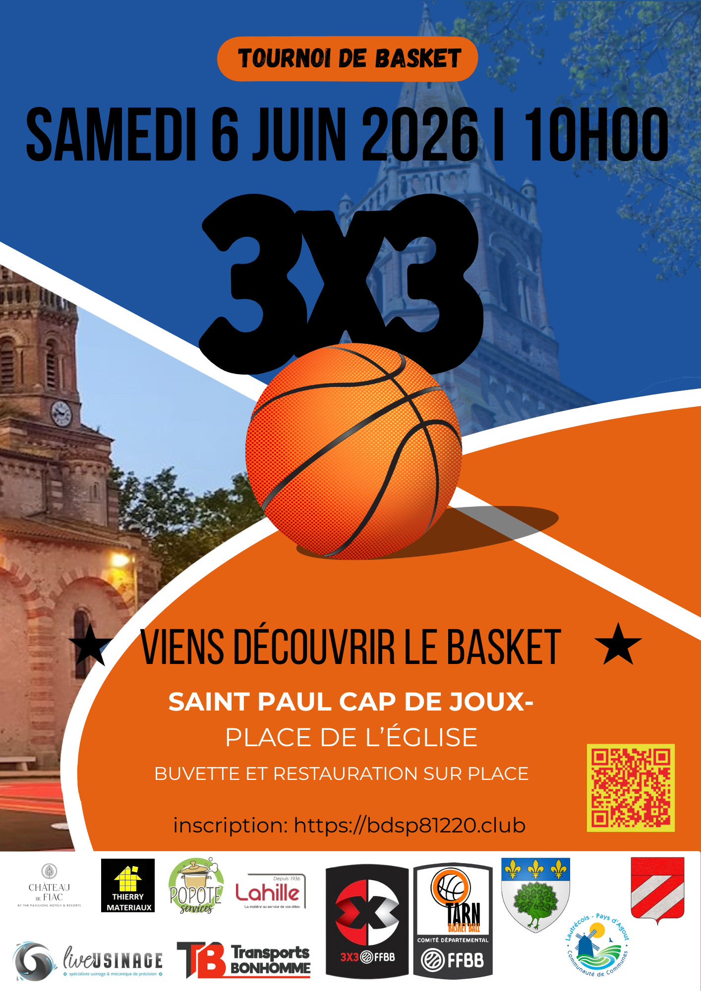 Une journée 100% basket avec tournois 3x3 dès 9h30, animations jeunes le matin et compétitions U13 à séniors tout au long de la journée.