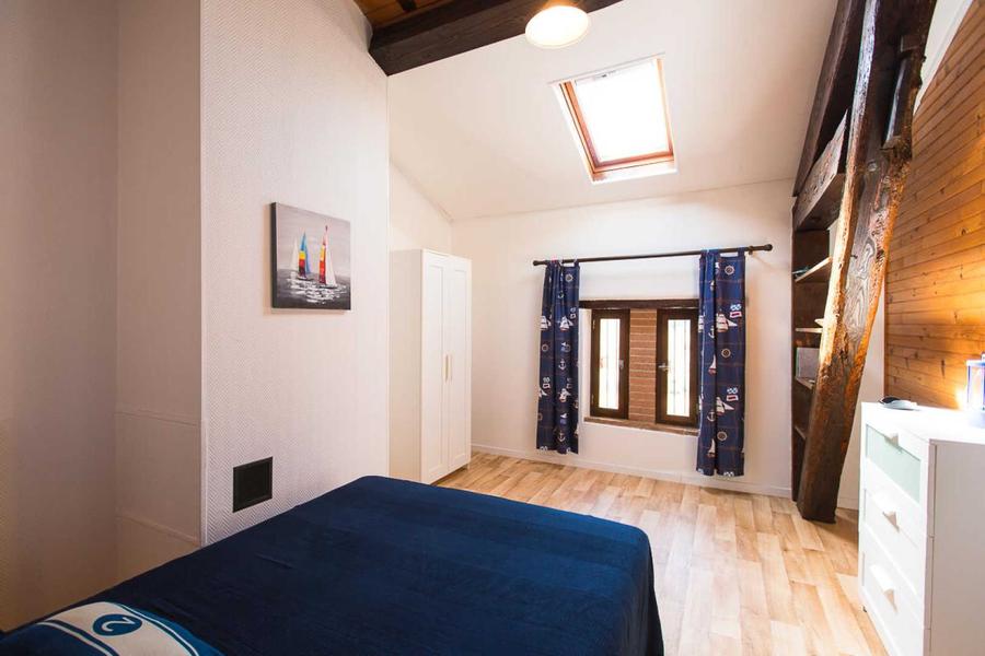 A l'étage : une suite parentale avec son lit 160, équipée d'une salle de bain privative et d'un lit enfant, trois autres chambres, une avec un lit en 160 et deux autres avec un lit en 140, enfin la grande et coquette chambre dortoir avec ses quatre lits en 90. Deux salles de bains + un WC.