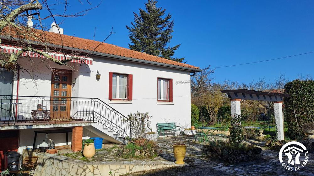 Maison indépendante située au premier étage, au-dessus du garage (non accessible). Balcon avec salon de jardin et auvent pour s'abriter du soleil. Vous pouvez entrer par la baie vitrée donnant dans la salle à manger, ou par la porte d'entrée donnant sur le couloir qui dessert l'ensemble des pièces de la maison. Wifi disponible.