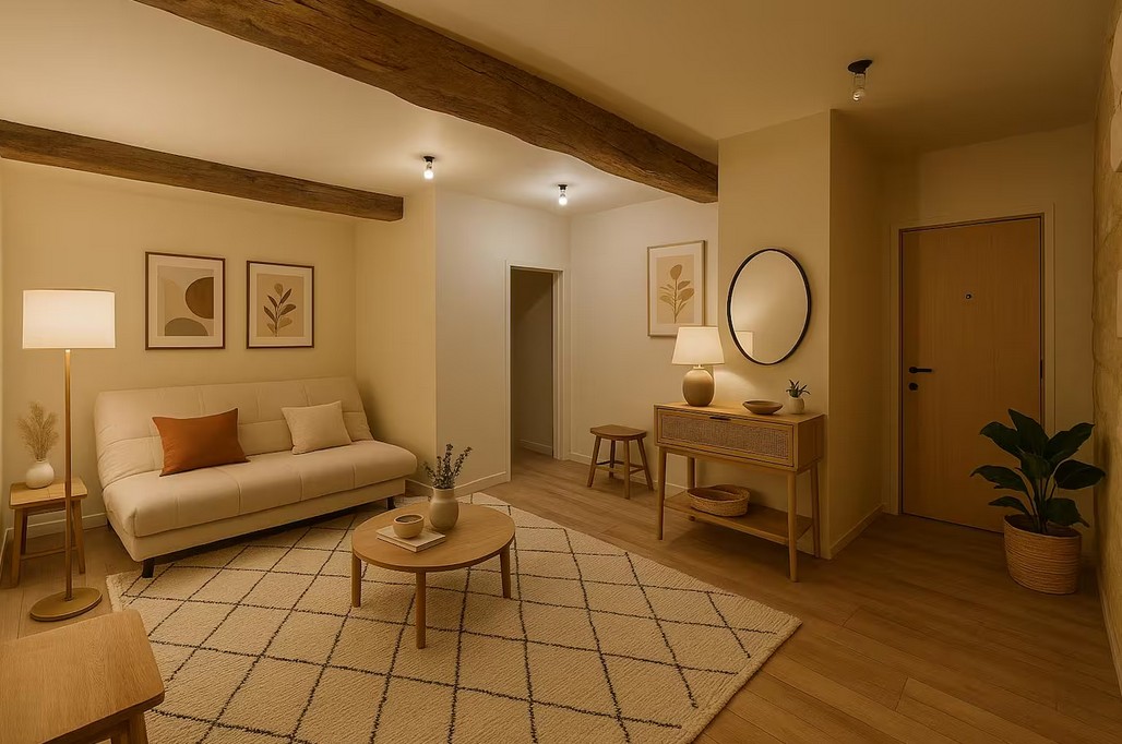 Venez découvrir ce lumineux studio entièrement refait à neuf, idéalement situé dans la rue principale — tout est à deux pas : commerces, cafés, transports, vie de quartier. Ce cocon cosy a été rénové avec soin : parquet flottant neuf, double vitrage, isolation optimisée, cuisine moderne, salle de douche contemporaine, pompe à chaleur… chaque détail a été pensé pour votre confort.