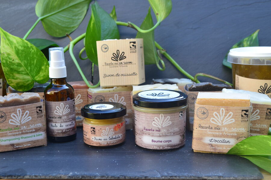 La savonnerie dispose d'une gamme d'une dizaine de savons pour le corps et le visage et de trois shampoings solides. Ils sont naturellement riches en glycérine et 8% surgras pour le soin des peaux les plus sensibles. La gamme comporte également des produits ménagers : savon de vaisselle solide et savon noir, ainsi que des baumes (baume au calendula, baume à la rose de Damas) et des huiles de maceration (calendula, carotte).